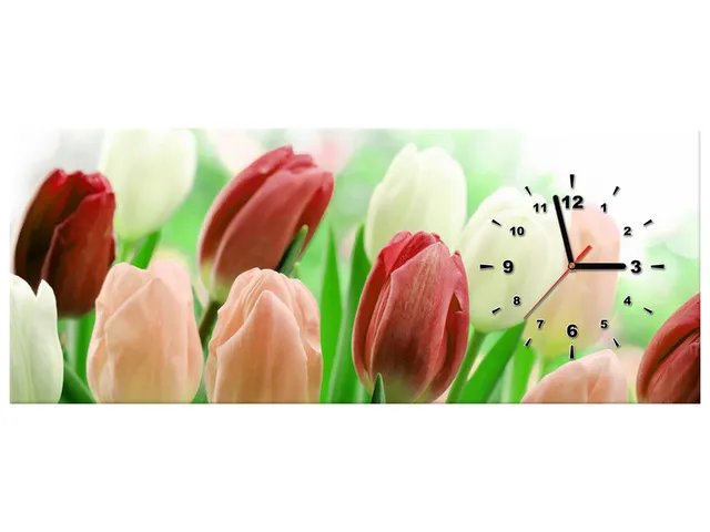 Úvod » Obrazy » Obrazy s hodinami » Moderný obraz s hodinami Červené tulipány