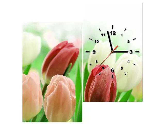 Úvod » Obrazy » Obrazy s hodinami » Moderný obraz s hodinami Červené tulipány