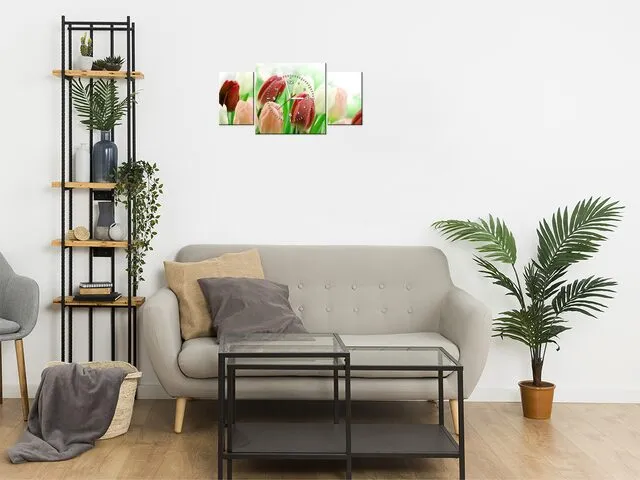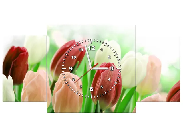 Úvod » Obrazy » Obrazy s hodinami » Moderný obraz s hodinami Červené tulipány