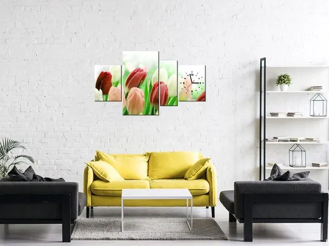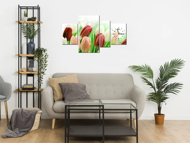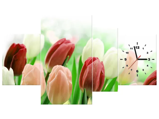 Úvod » Obrazy » Obrazy s hodinami » Moderný obraz s hodinami Červené tulipány
