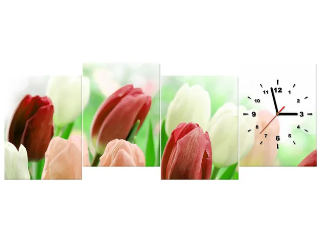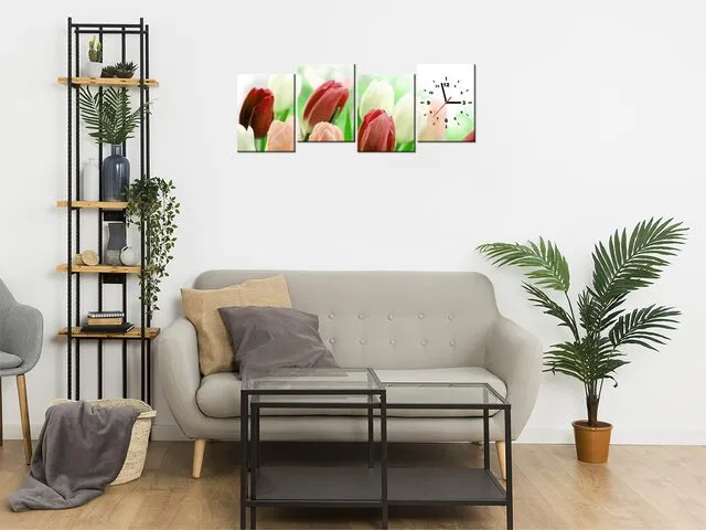 Úvod » Obrazy » Obrazy s hodinami » Moderný obraz s hodinami Červené tulipány