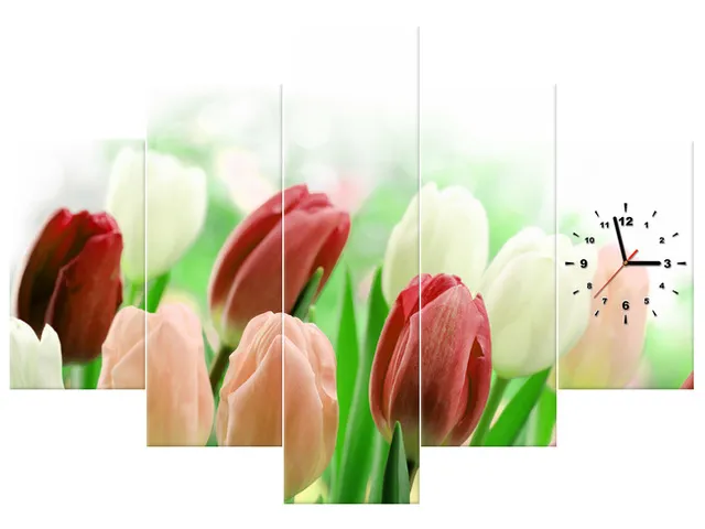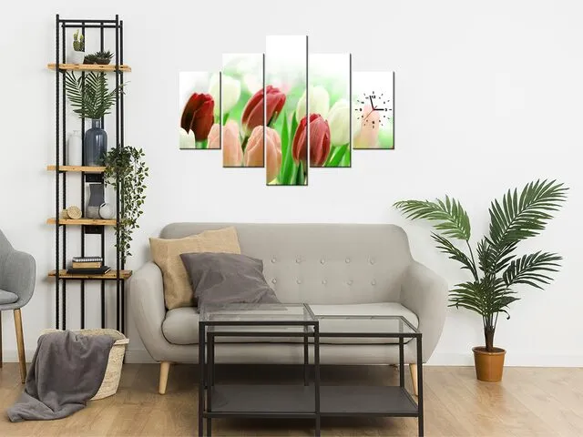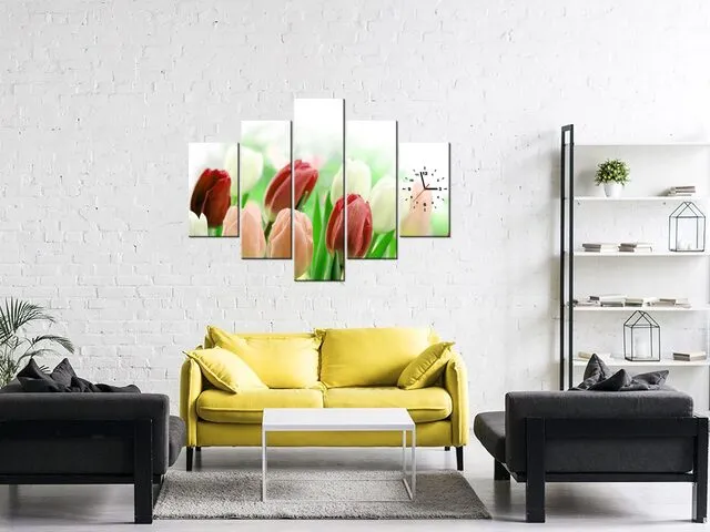 Úvod » Obrazy » Obrazy s hodinami » Moderný obraz s hodinami Červené tulipány