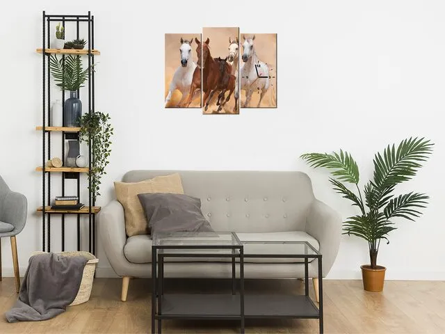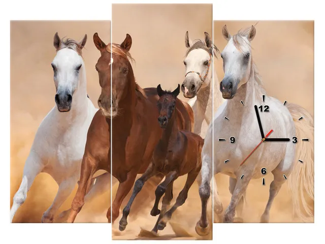 Úvod » Obrazy » Obrazy s hodinami » Moderný obraz s hodinami Cválajúce kone