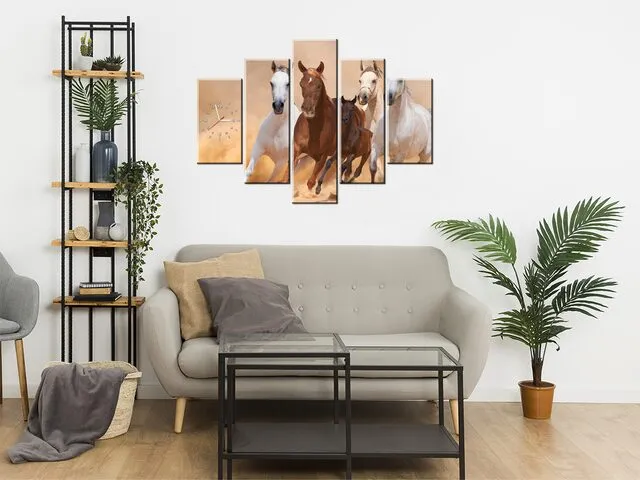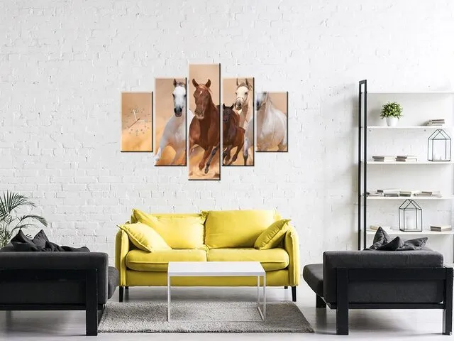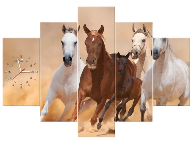 Úvod » Obrazy » Obrazy s hodinami » Moderný obraz s hodinami Cválajúce kone