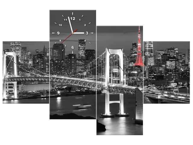 ZP2390A_1E Moderný obraz s hodinami Dúhový most v Tokiu |