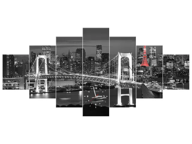 Úvod » Obrazy » Obrazy s hodinami » Moderný obraz s hodinami Dúhový most v Tokiu
