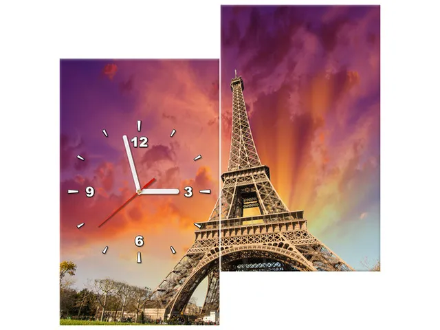 Úvod » Obrazy » Obrazy s hodinami » Moderný obraz s hodinami Eiffelova veža