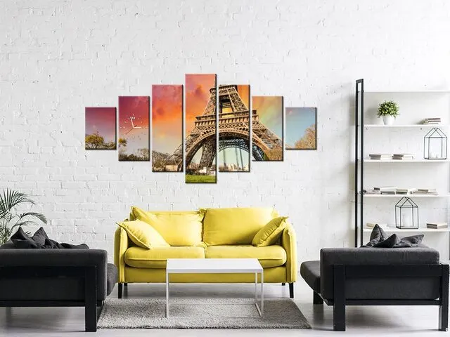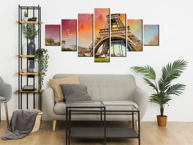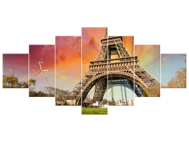 Úvod » Obrazy » Obrazy s hodinami » Moderný obraz s hodinami Eiffelova veža