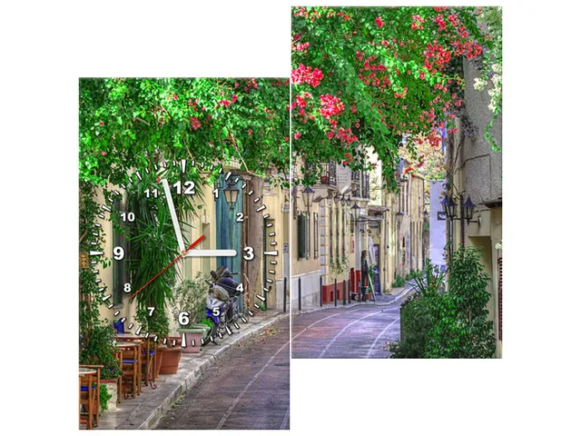 Úvod » Obrazy » Obrazy s hodinami » Moderný obraz s hodinami Grécka ulička