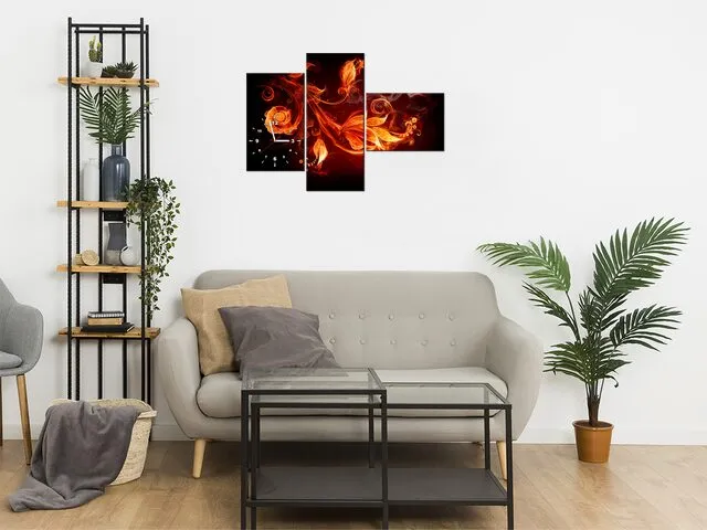 Úvod » Obrazy » Obrazy s hodinami » Moderný obraz s hodinami Horiace kvety