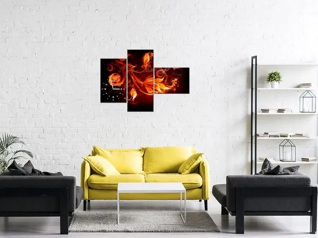 ZP1169A_3V Moderný obraz s hodinami Horiace kvety |
