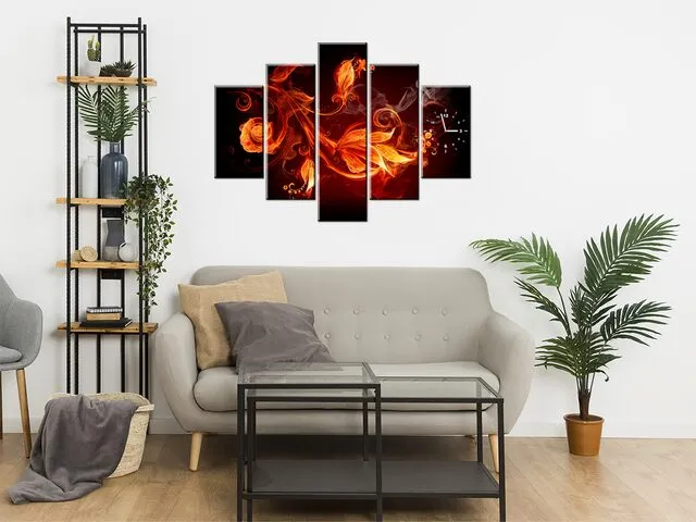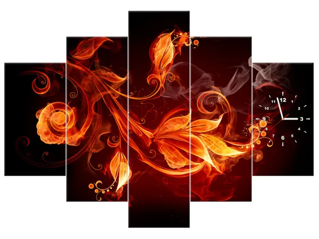 Úvod » Obrazy » Obrazy s hodinami » Moderný obraz s hodinami Horiace kvety