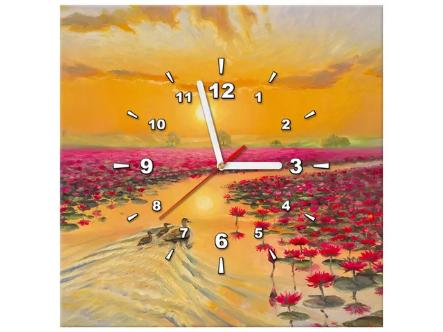 Úvod » Obrazy » Obrazy s hodinami » Moderný obraz s hodinami Kačky v ľaliách