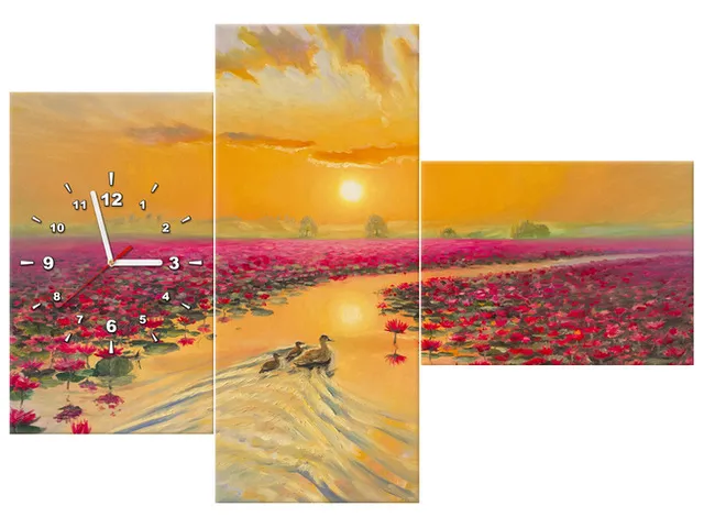 Úvod » Obrazy » Obrazy s hodinami » Moderný obraz s hodinami Kačky v ľaliách