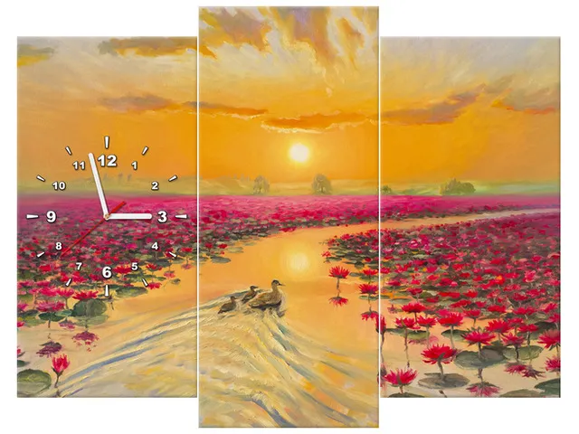 Úvod » Obrazy » Obrazy s hodinami » Moderný obraz s hodinami Kačky v ľaliách