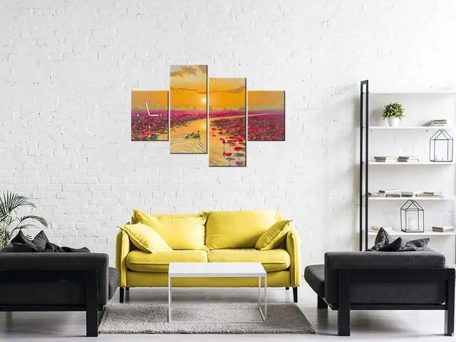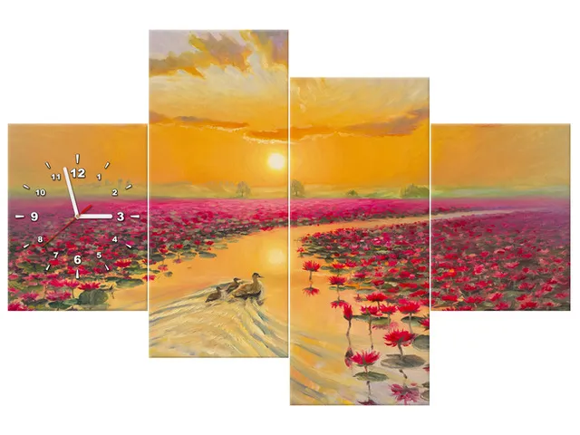 Úvod » Obrazy » Obrazy s hodinami » Moderný obraz s hodinami Kačky v ľaliách
