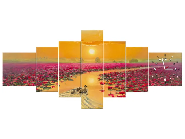 Úvod » Obrazy » Obrazy s hodinami » Moderný obraz s hodinami Kačky v ľaliách