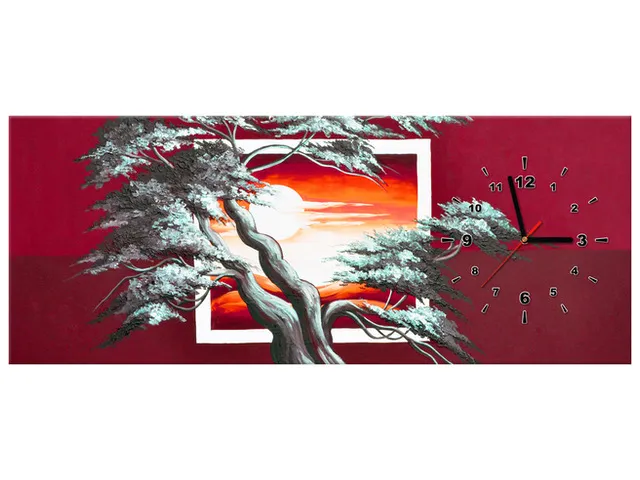 Úvod » Obrazy » Obrazy s hodinami » Moderný obraz s hodinami Karmínový západ slnka