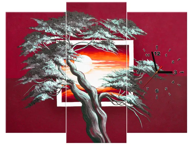 Úvod » Obrazy » Obrazy s hodinami » Moderný obraz s hodinami Karmínový západ slnka