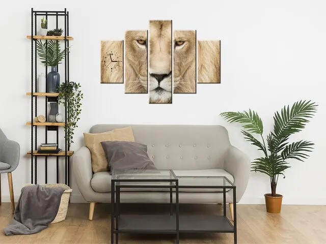 Úvod » Obrazy » Obrazy s hodinami » Moderný obraz s hodinami Kráľ zvierat