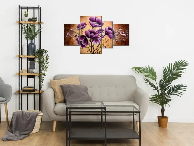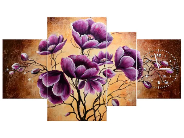 Moderný obraz s hodinami Krásne fialky