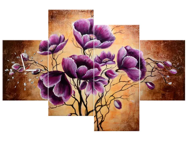 Úvod » Obrazy » Obrazy s hodinami » Moderný obraz s hodinami Krásne fialky