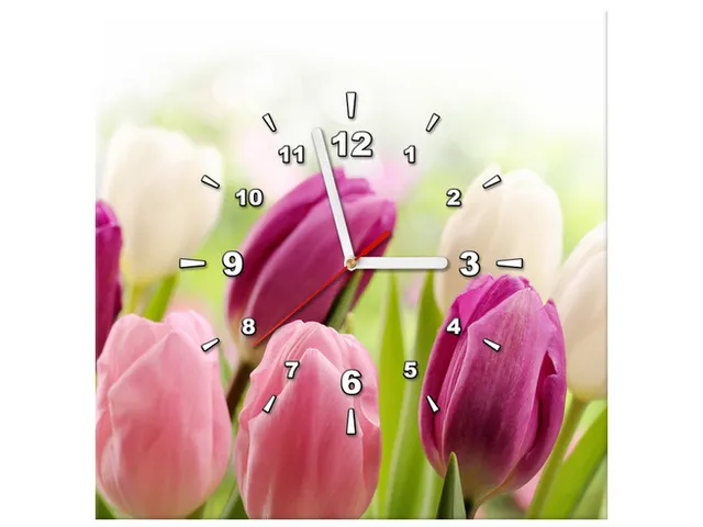 Úvod » Obrazy » Obrazy s hodinami » Moderný obraz s hodinami Krásne tulipány