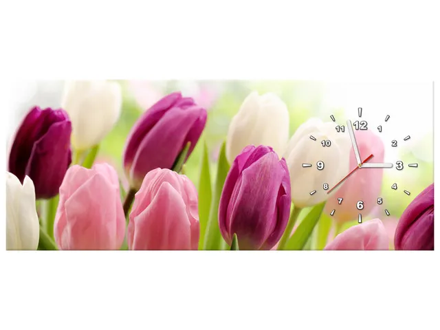 Úvod » Obrazy » Obrazy s hodinami » Moderný obraz s hodinami Krásne tulipány