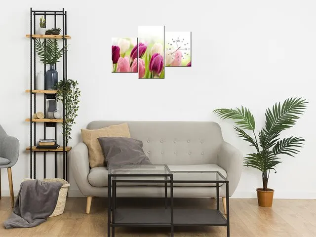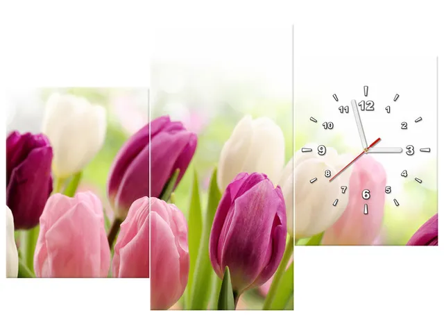 Úvod » Obrazy » Obrazy s hodinami » Moderný obraz s hodinami Krásne tulipány