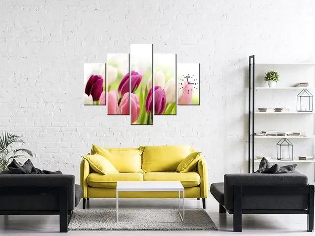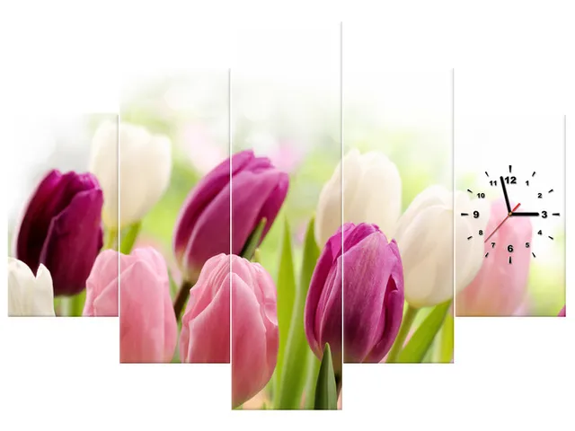 Úvod » Obrazy » Obrazy s hodinami » Moderný obraz s hodinami Krásne tulipány