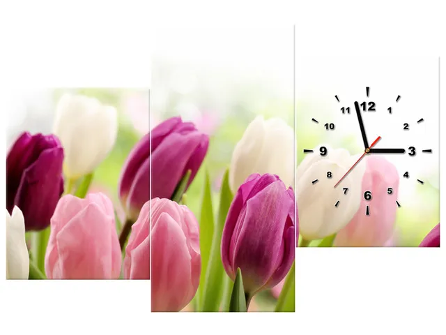 Úvod » Obrazy » Obrazy s hodinami » Moderný obraz s hodinami Krásne tulipány
