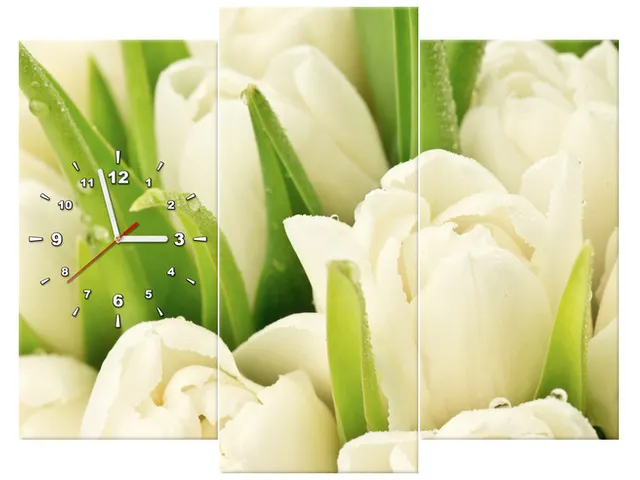Úvod » Obrazy » Obrazy s hodinami » Moderný obraz s hodinami Krásne tulipány