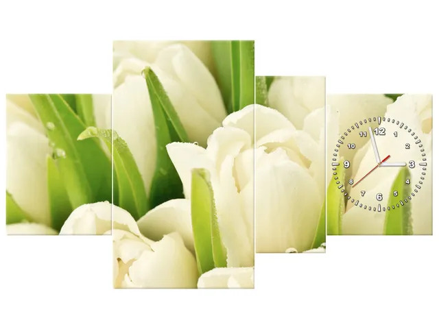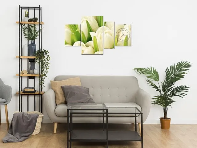 Úvod » Obrazy » Obrazy s hodinami » Moderný obraz s hodinami Krásne tulipány