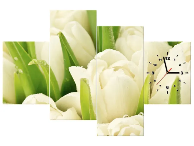 Úvod » Obrazy » Obrazy s hodinami » Moderný obraz s hodinami Krásne tulipány