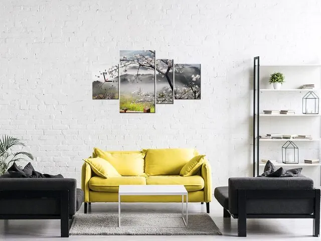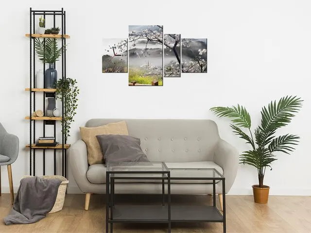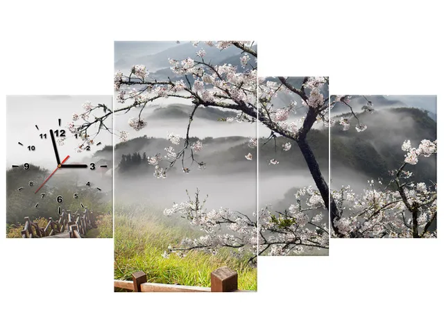 Úvod » Obrazy » Obrazy s hodinami » Moderný obraz s hodinami Kvitnúca višňa