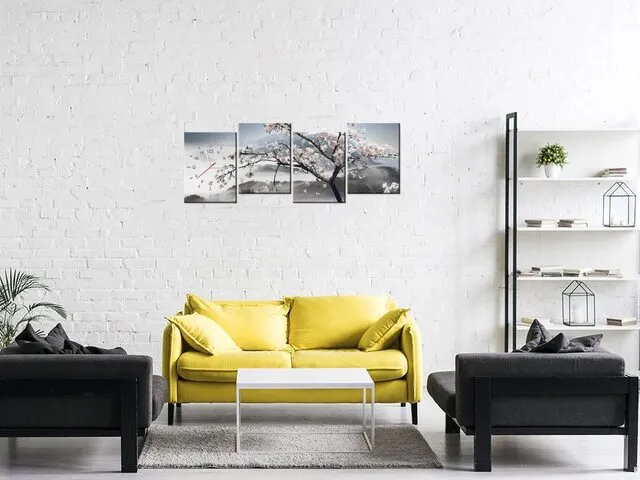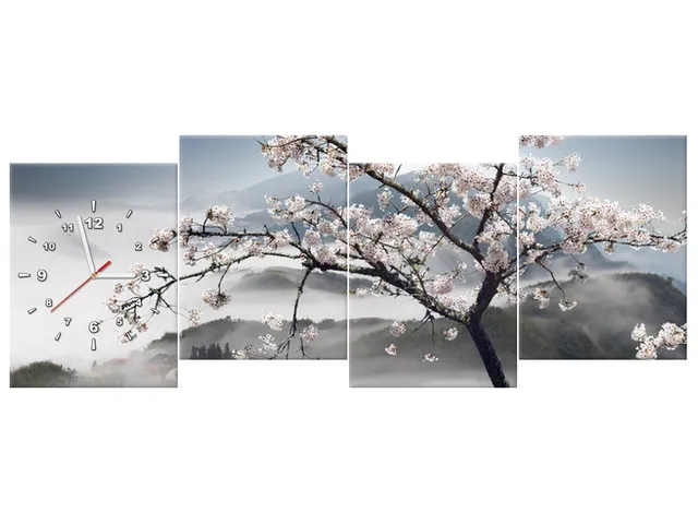Úvod » Obrazy » Obrazy s hodinami » Moderný obraz s hodinami Kvitnúca višňa