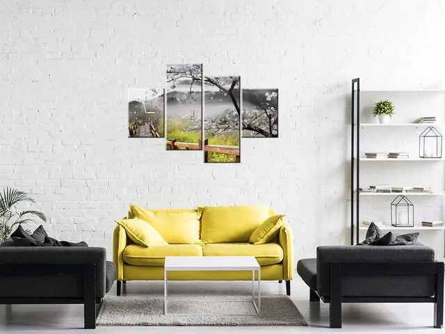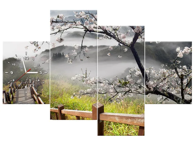 Úvod » Obrazy » Obrazy s hodinami » Moderný obraz s hodinami Kvitnúca višňa