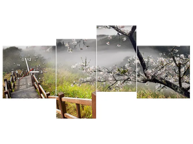 Úvod » Obrazy » Obrazy s hodinami » Moderný obraz s hodinami Kvitnúca višňa