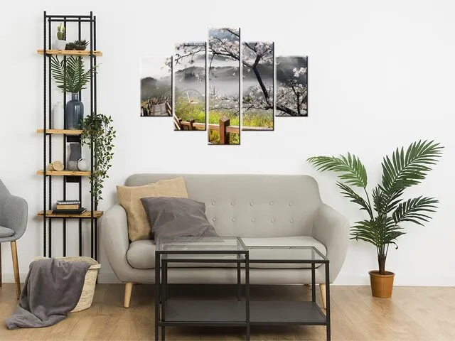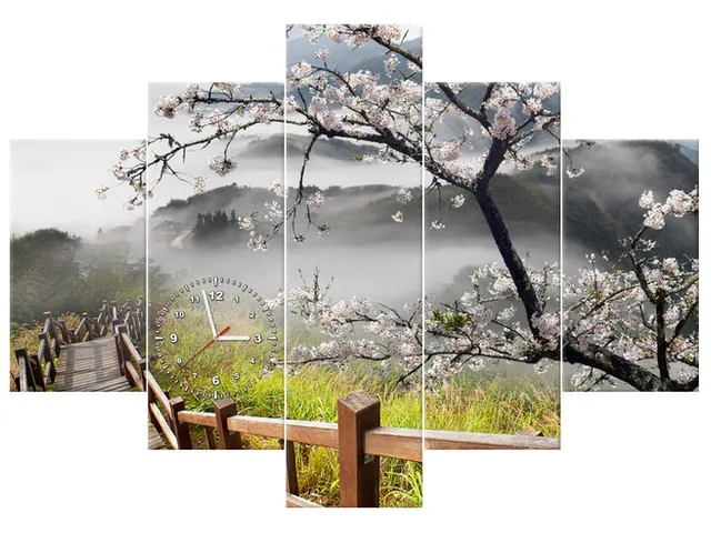 Úvod » Obrazy » Obrazy s hodinami » Moderný obraz s hodinami Kvitnúca višňa