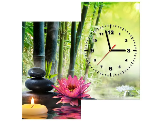 Úvod » Obrazy » Obrazy s hodinami » Moderný obraz s hodinami Ľalie a bambusy
