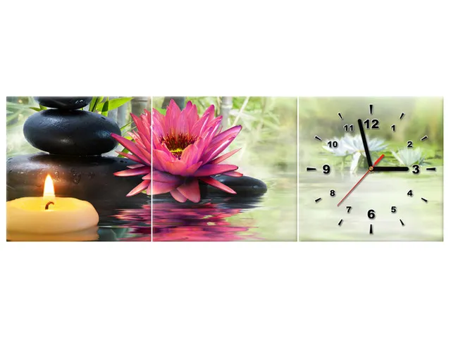 Úvod » Obrazy » Obrazy s hodinami » Moderný obraz s hodinami Ľalie a bambusy