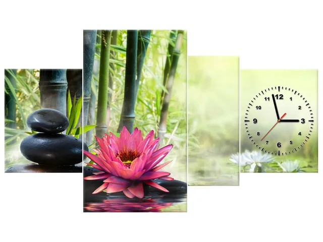 Úvod » Obrazy » Obrazy s hodinami » Moderný obraz s hodinami Ľalie a bambusy