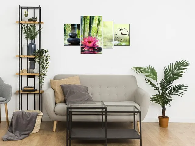 Barion Pixel Moderný obraz s hodinami Ľalie a bambusy