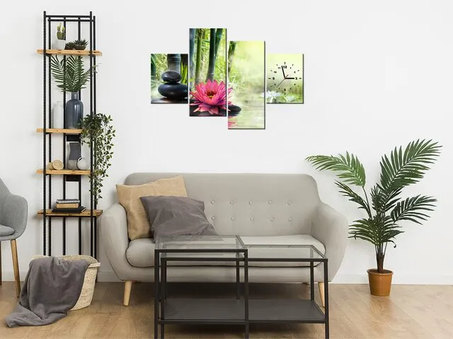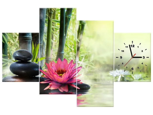 Úvod » Obrazy » Obrazy s hodinami » Moderný obraz s hodinami Ľalie a bambusy