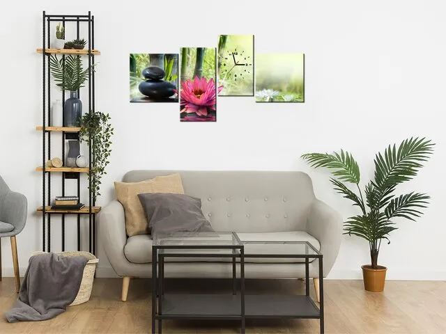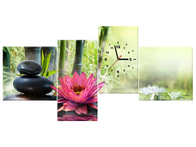 Úvod » Obrazy » Obrazy s hodinami » Moderný obraz s hodinami Ľalie a bambusy