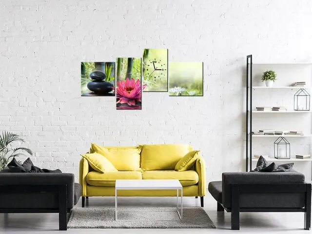 ZP2051A_4E Moderný obraz s hodinami Ľalie a bambusy |