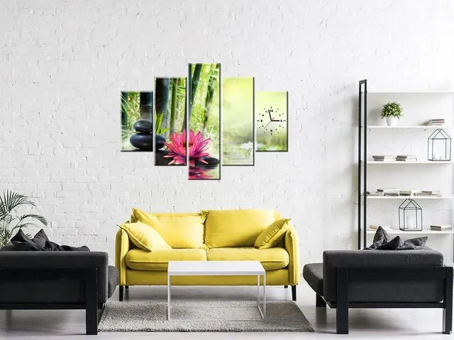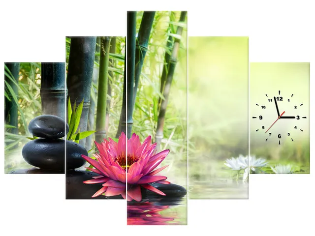 ZP2051A_5B Moderný obraz s hodinami Ľalie a bambusy |
