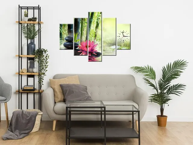 Úvod » Obrazy » Obrazy s hodinami » Moderný obraz s hodinami Ľalie a bambusy