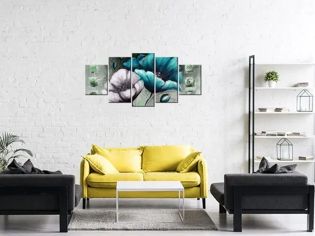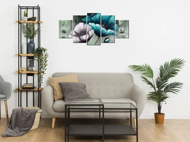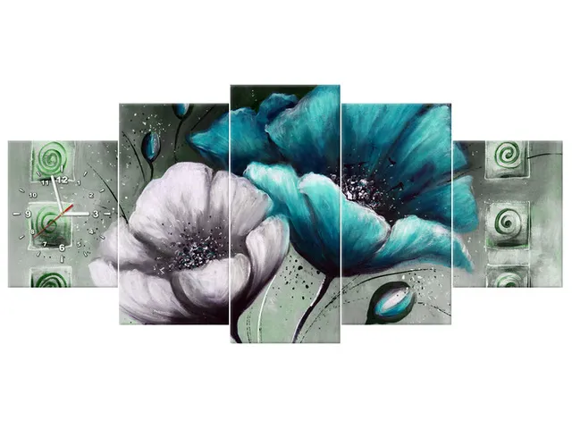 Úvod » Obrazy » Obrazy s hodinami » Moderný obraz s hodinami Maľované tyrkysové maky