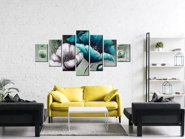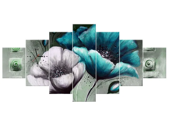 Úvod » Obrazy » Obrazy s hodinami » Moderný obraz s hodinami Maľované tyrkysové maky